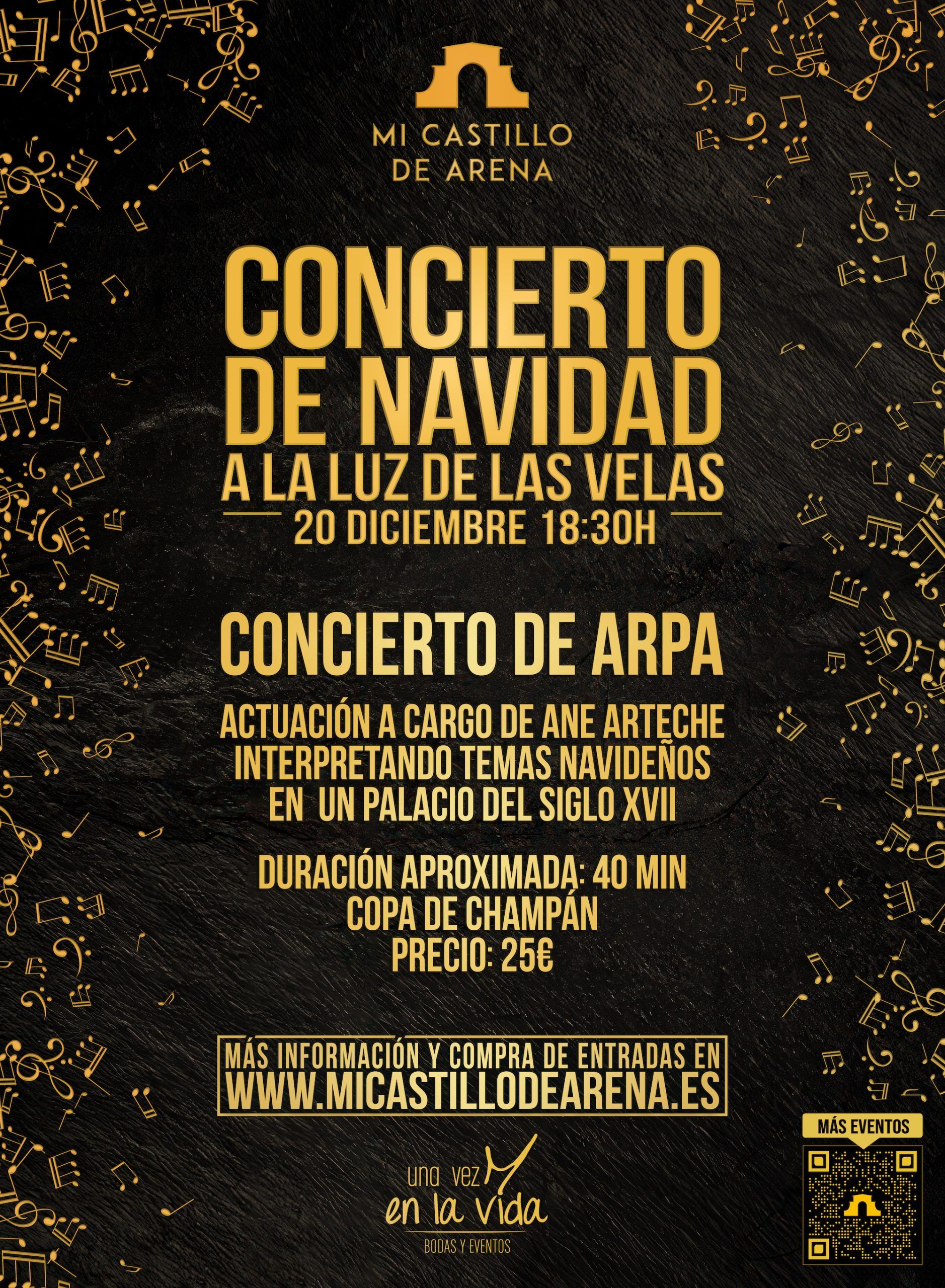 Recital de arpa en Mi Castillo de Arena con la intérprete Ane Arteche. Un programa variado con villancicos del mundo y obras del repertorio arpístico. Un recital sorprendente. Asistentes a partir de 12 años de edad.
